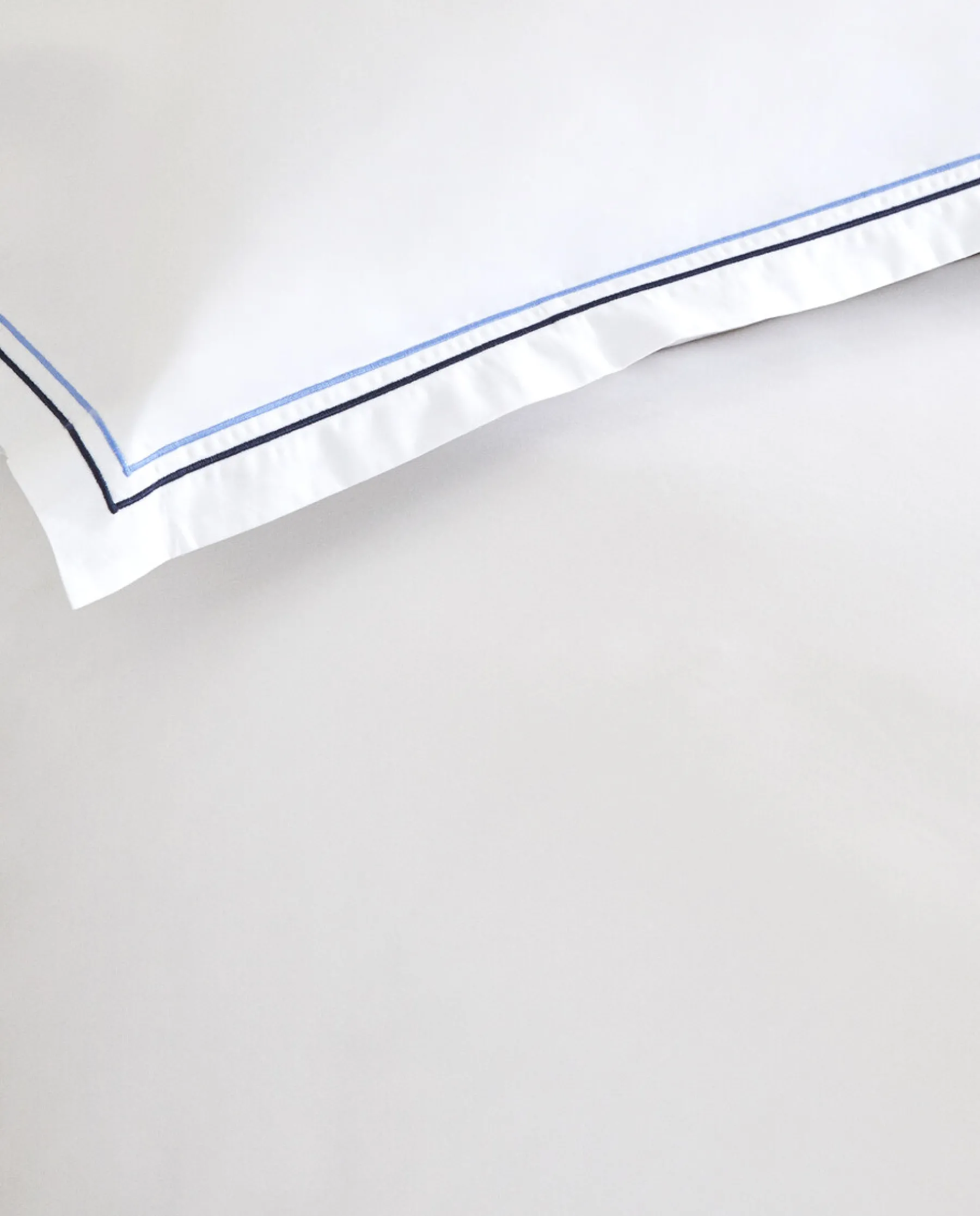 Duvet Cover In 200 Thread Count Percale With Blue Double Trim Details. Concealed Button Fastening At The Bottom.