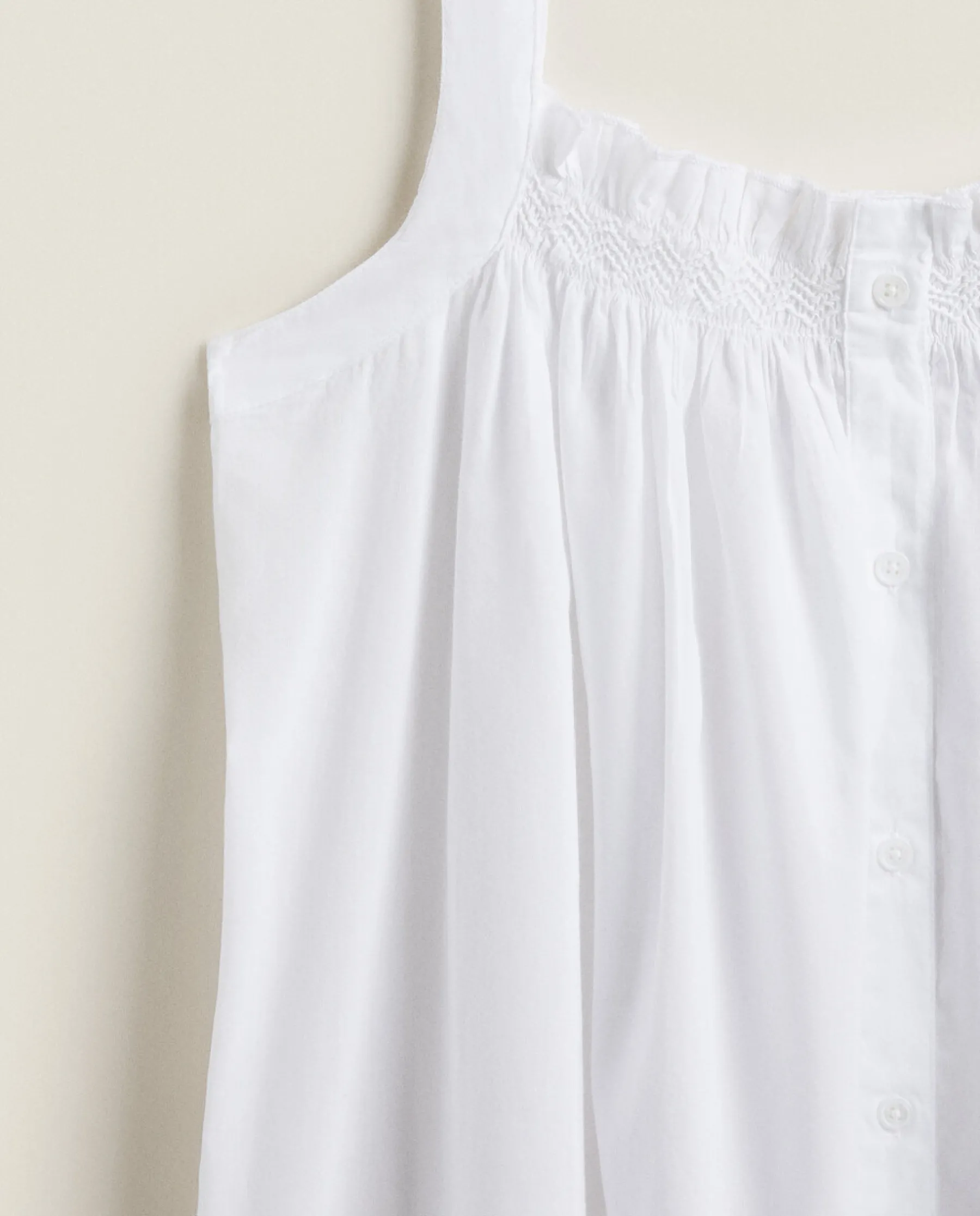 Cotton Nightgown With Wide Straps And Gathered Detail On The Chest.