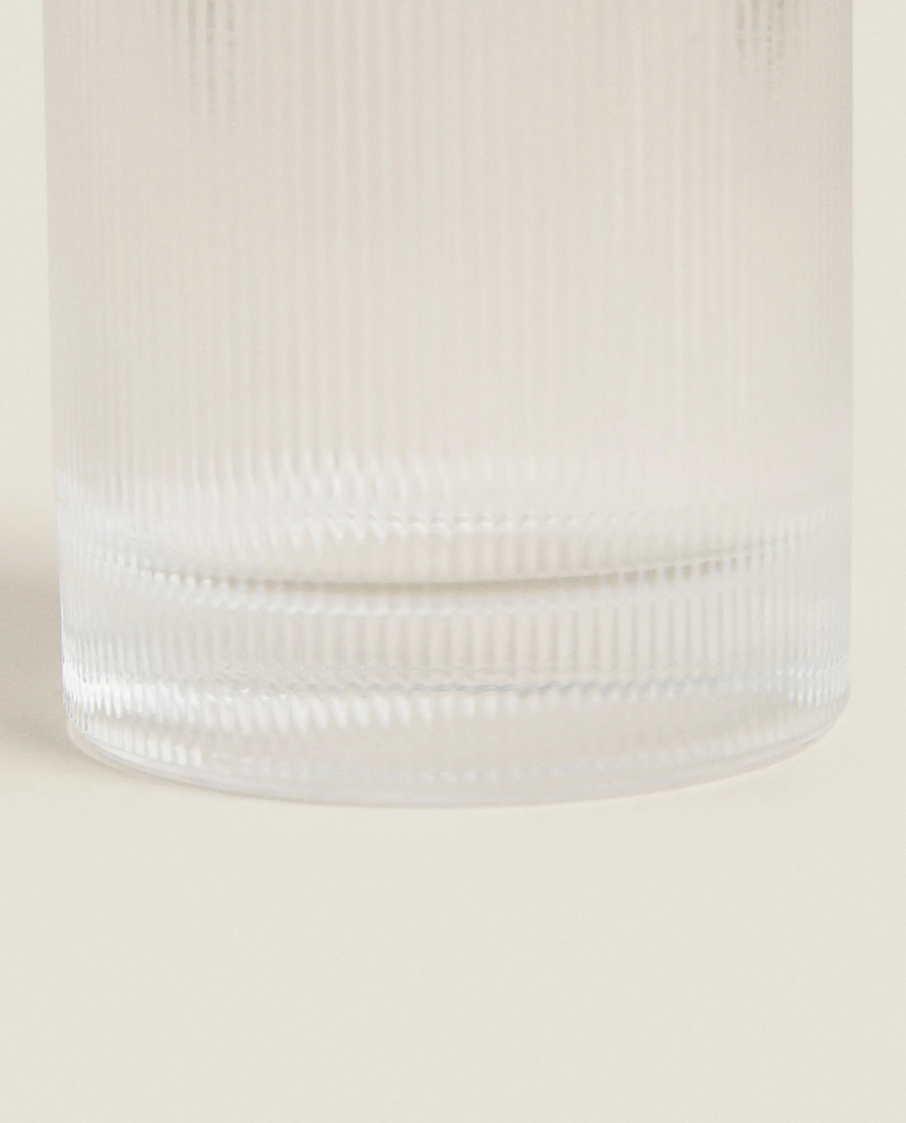Cylindrical Glass Dispenser With A Raised Stripe Design.