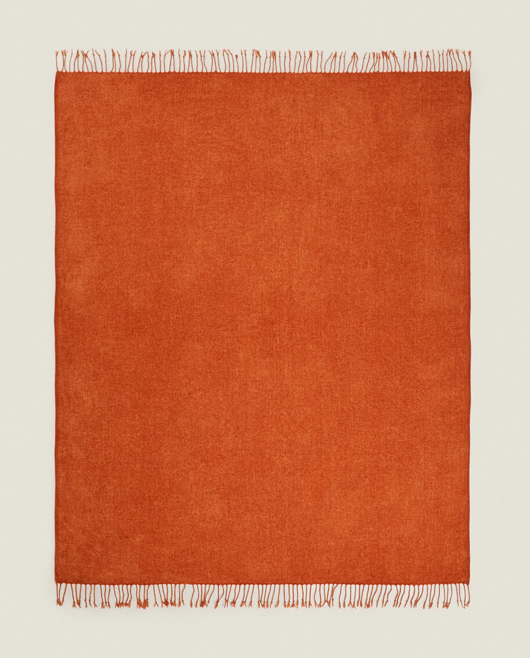 Solid Chenille Blanket With Fringed Edges.