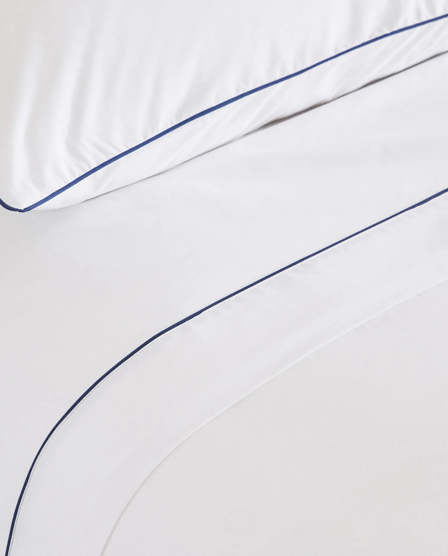 Duvet Cover In 300-Thread-Count Cotton Percale With A Plain Design And Contrast Blue Piping Detail. Concealed Button Fastening At The Bottom.