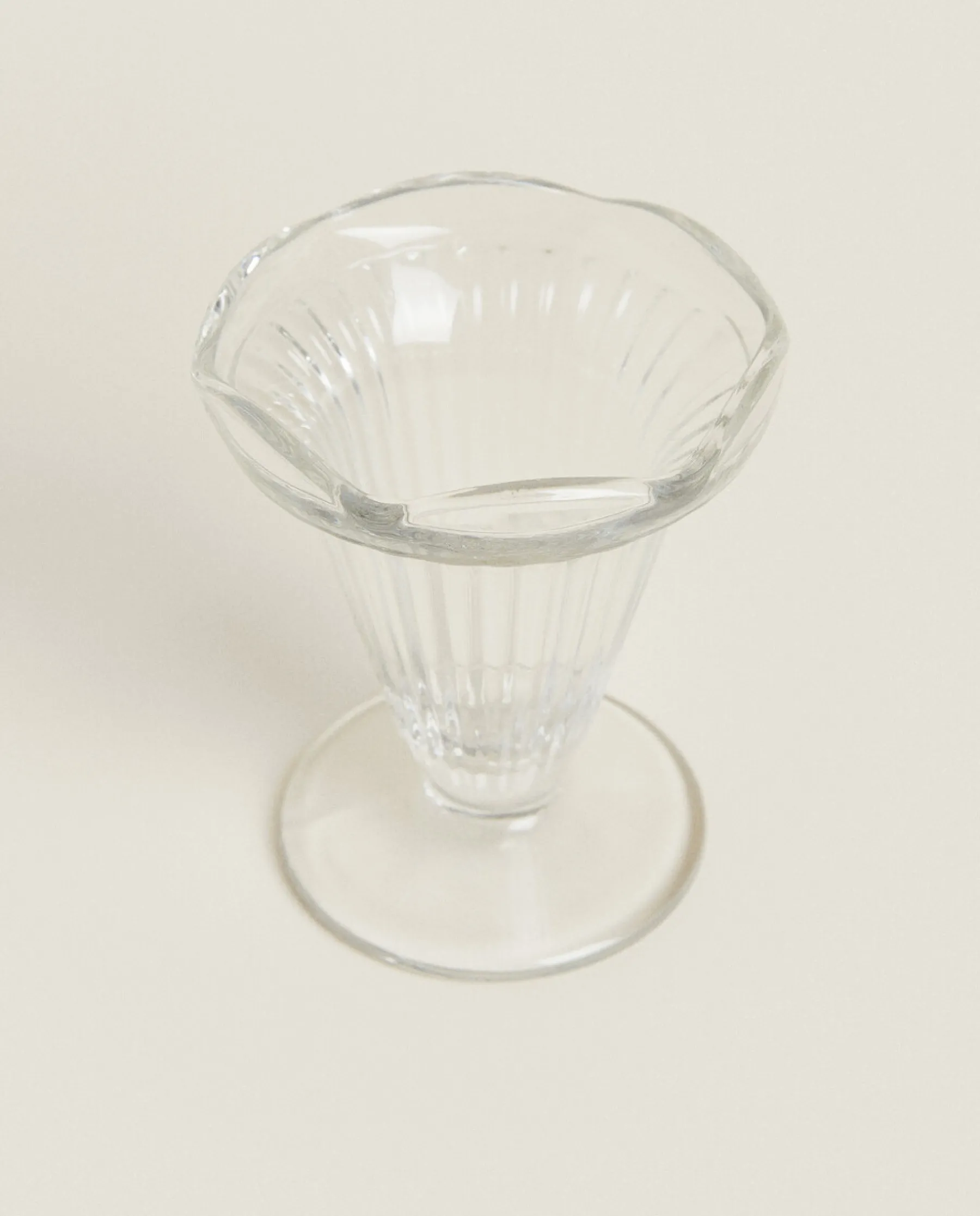Glass Ice-Cream Cup With A Raised Lines Design.