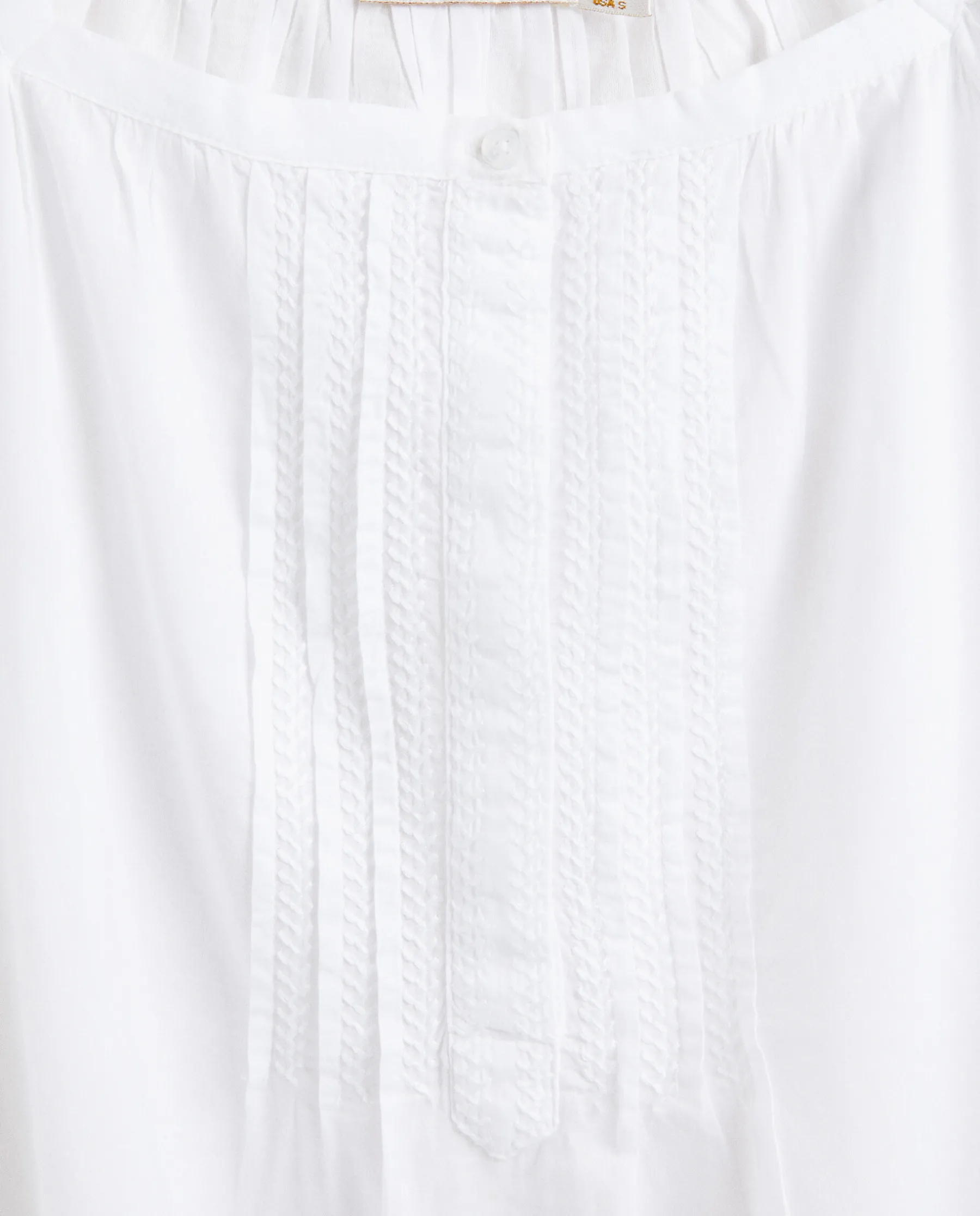 Short Sleeve Cotton Nightgown With Pintucks On The Front And Embroidered Butterflies.